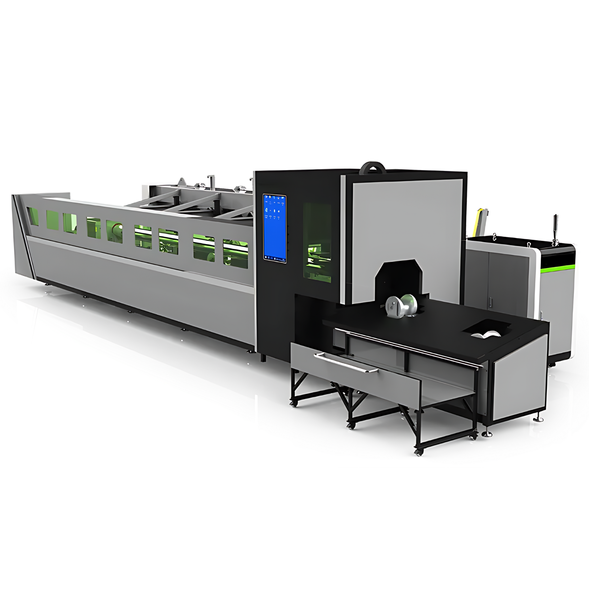 Adopta el tubo cuadrado estándar nacional, un tratamiento térmico de alta temperatura de 600 metros, 12 metros de molienda de pórtico con acabado, 24 horas de enfriamiento dentro del horno, asegurando el uso a largo plazo de lamáquina sin que la precisión de la máquina está garantizada. Cabeza de corte láser Raytools / WSX / Precitec (opcional)
