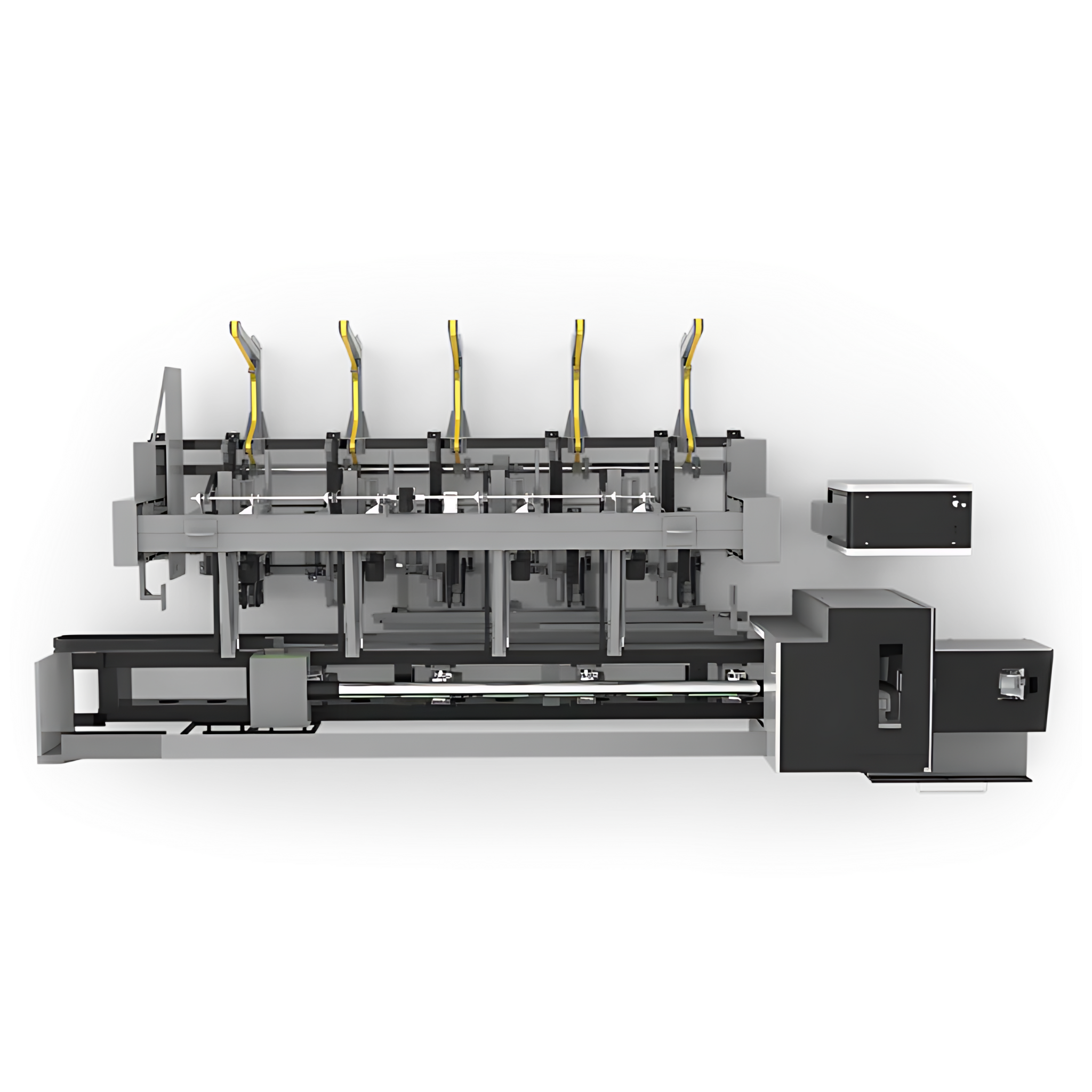 El dispositivo de carga y descarga automática de material se controla mediante un sistema de control numérico para alimentar las tuberías, estas tuberías pueden estar en Enviar, se dividen, cargadas y conectadas ligentamente sin problemas con el cortador de tubería para asegurarse de que solo se transporta una tubería al brazo de entrega. a la vez. Esto disminuye el costo de los materiales de entrega manual.