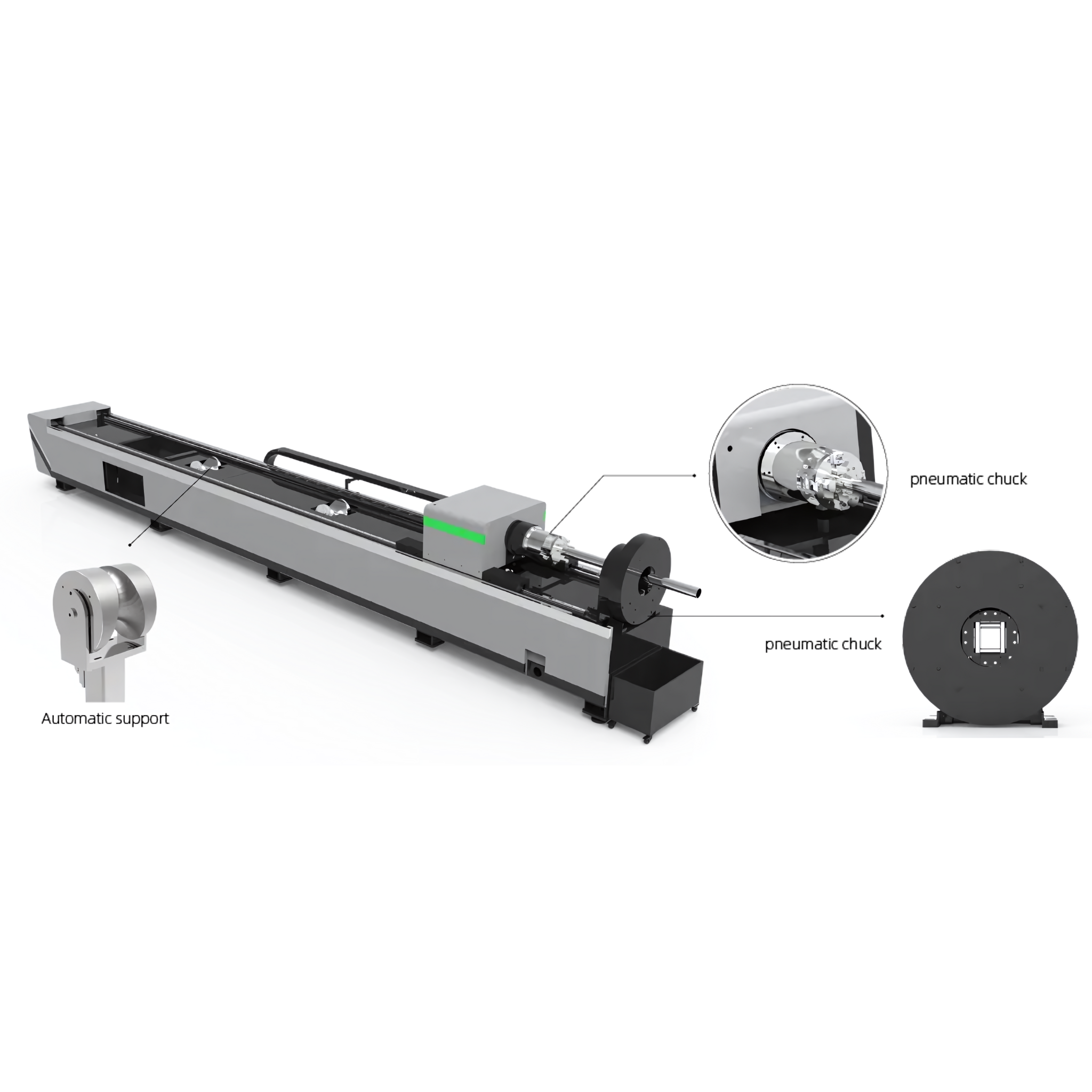 El frente y la parte trasera están equipados con un mandril neumático completamente automático..El DIA Ir Rango Ajustable NAL es de 20-220 mm.